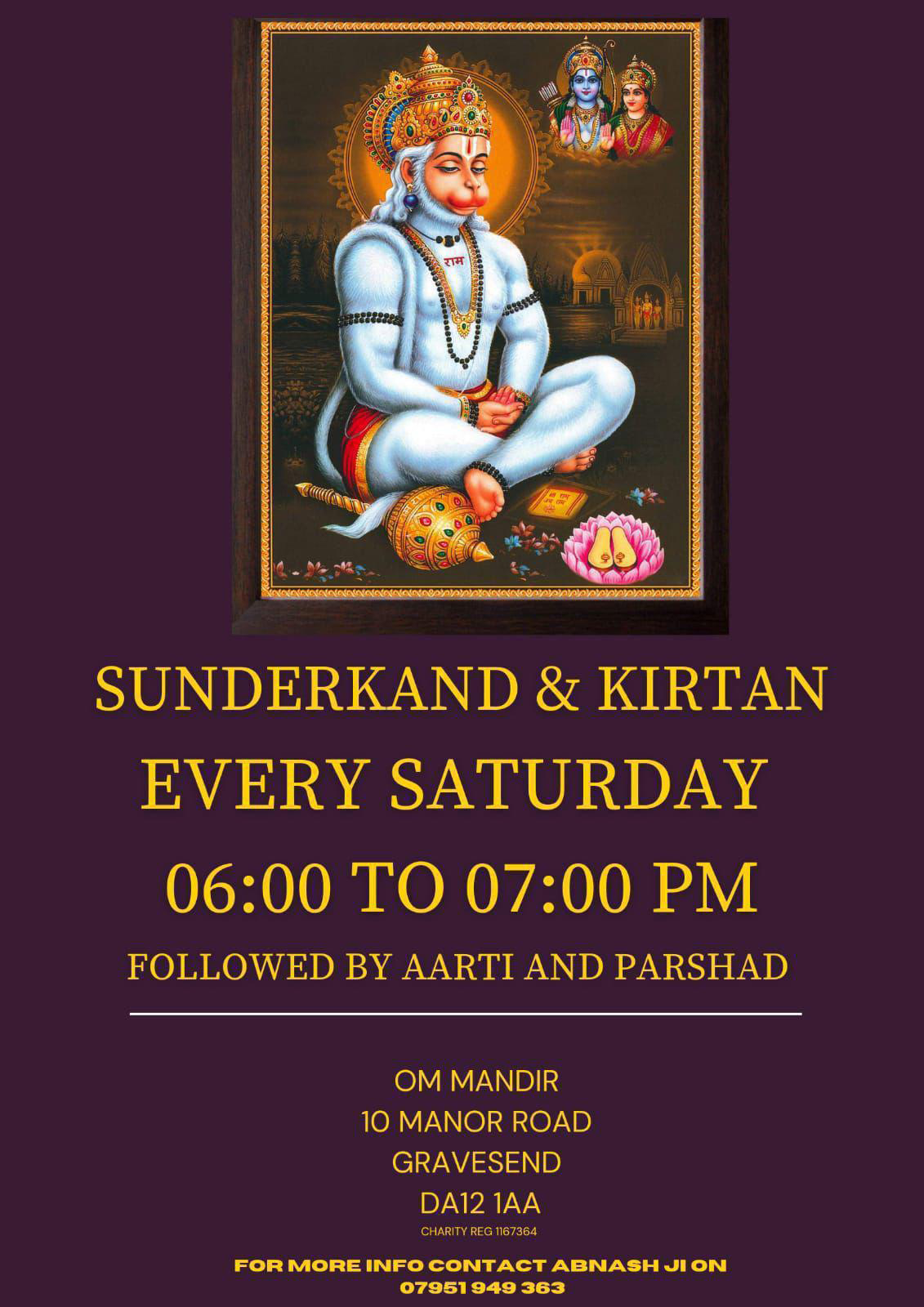 Saturday, January 24 Saturday, January 24 Sunderkand & Kirtan Sunderkand & Kirtan Every Saturday 06:00 to 7:00 PM