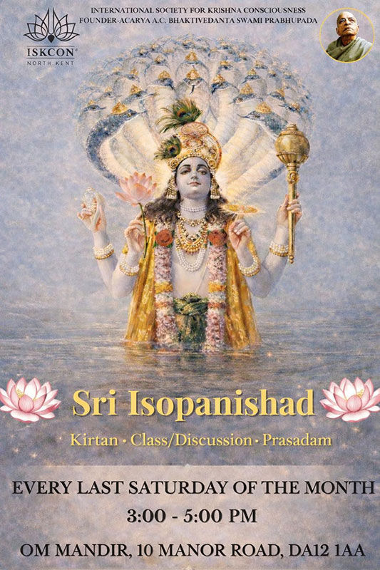 Friday, February 20 Friday, February 20 Join the Sri Isopanishad Kirtan & Discussion – Every Last Saturday Join us for the Sri Isopanishad gathering featuring kirtan, spiritual discussion, and prasadam. Held every last Saturday of the month from 3:00 to 5:00 PM at OM Mandir.